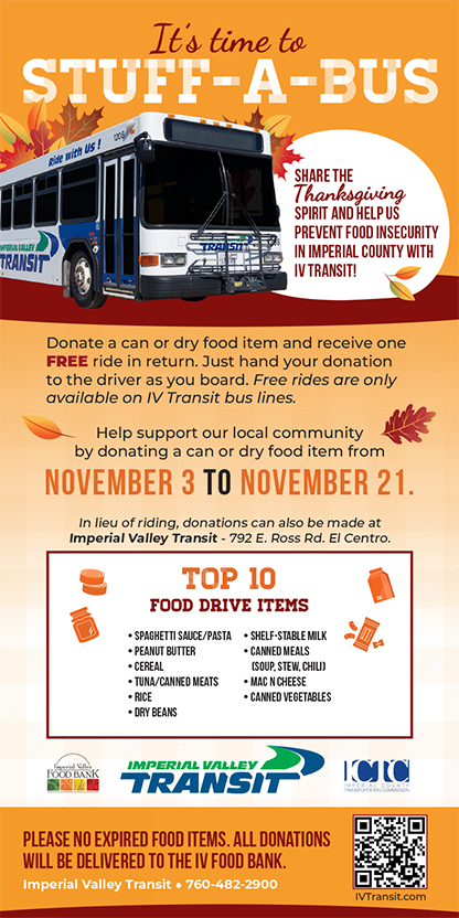 Donations can also be made at Imperial Valley Transit, 792 E Ross Rd, El Centro.